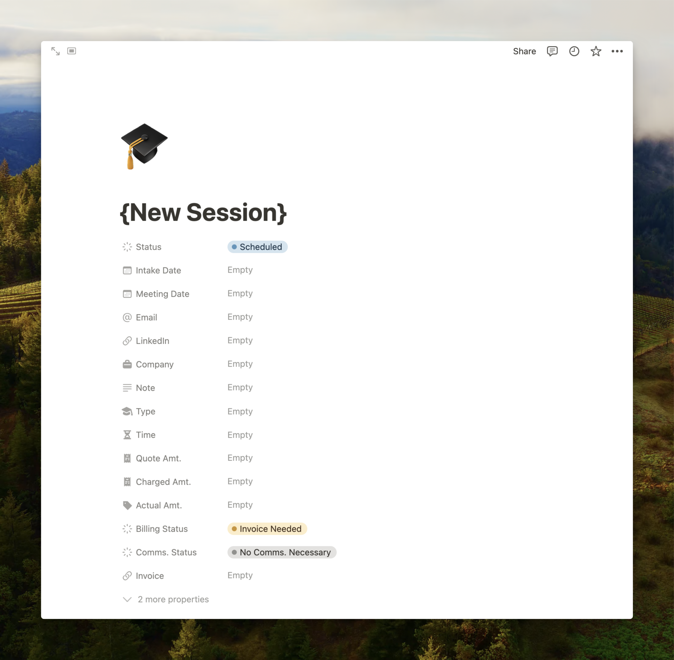 Beyond capturing those answers, I also need to save information, such as their email, planned agenda items, invoicing links, and payment statuses. I needed a CRM tool, something I never thought I would say, but I didn’t want the many features and high costs that often come with them. I had considered a simple spreadsheet, but managing and referencing more significant amounts of notes related to each line item didn’t seem easy to do, and databases in Notion are where I think the tool shines most.