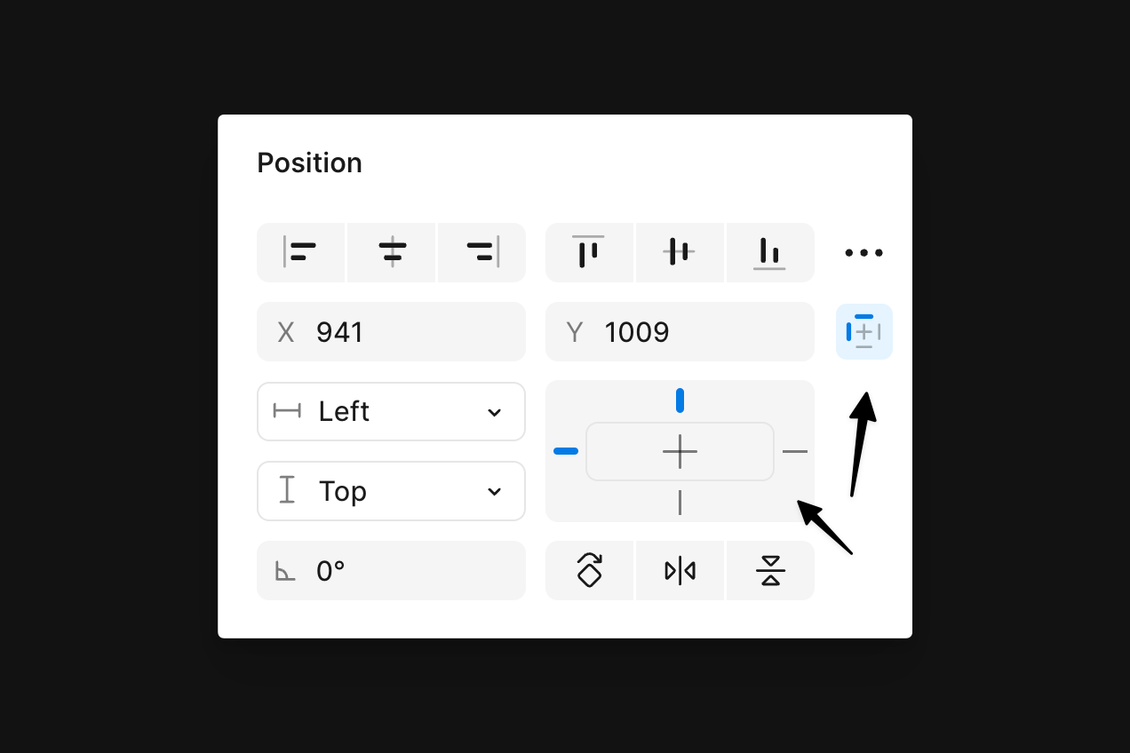 The toggle should always stay anchored to the right and centered. With the toggle selected on the right side within Figma’s Properties Panel, I’ll apply right and center constraints.